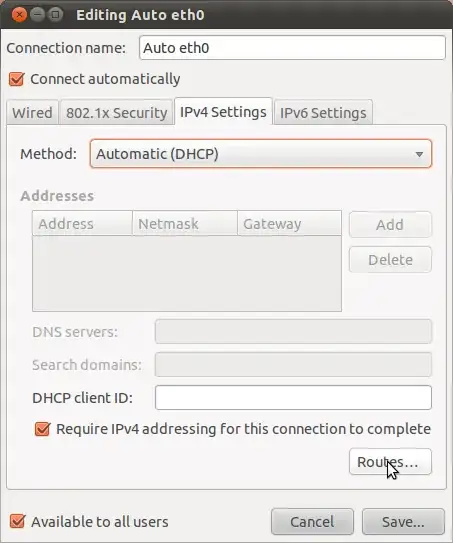 I wish to connect to two separate networks. The wireless connection is to router A which is connected to broadband internet. The wired connection is to router B which I wish to share files and a printer on 1 or 2 other desktops also using wired connections on B and maybe using synergy to have only one keyboard and mouse for 2 desktops. The wireless laptop is the only one required to have internet access.