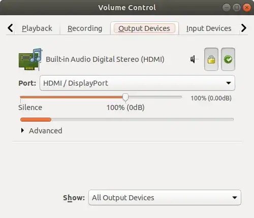I've checked with pavucontrol to make sure that nothing is muted. This is what the panel looks like: