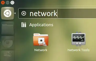 First of all, either click on the launcher icon (or press super) and it opens Unity panel. Now search for Network, and it will show you some results like this: