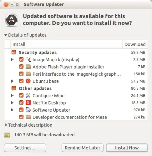 It ran apt-get update in the background, and it identified that there is software that needs to be upgraded. All you need to do is hit Install Now, and Ubuntu should start downloading and installing. Clicking Install Now is just the equivalent of doing apt-get upgrade.