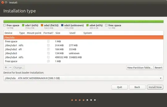 That's my partitions. I'm trying to dual boot Windows 8.1 and ubuntu 14.04, and I've disabled secureboot, fastboot, and all that crap. I'm trying to install it with UEFI.