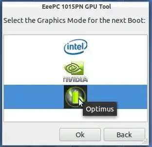 To use Optimus as default GPU mode, click on the 'Set Default GPU' button in the Settings Window. Also disable the auto-power down of the nvidia chip in optimus mode. The 'bbswitch' daemon shipped with bumblebee takes control over the power state of the nvidia gpu.