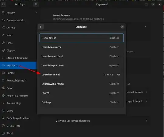 In Ubuntu 22.04 I did it by going to Settings -> Keyboard -> Keyboard Shortcuts -> Launchers -> Launch Terminal.