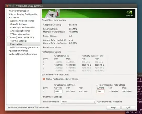 So I first installed the Ubuntu NVIDIA "Current Proprietary" tested.