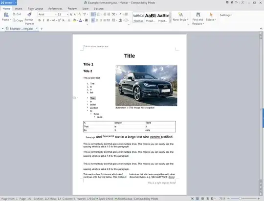 docx, but the times I work with docx, the latest LibreOffice, manages to work 99% of the time. ALso, might be an idea to usedocinstead. – blade19899 Jan 14 '16 at 20:205.0.4.2), never needed to usedocx. I thinkdocis your best bet. You will never get 100% compatibility between Office Suits. FOr reasons @JacobVlijm mentioned. – blade19899 Jan 14 '16 at 20:28