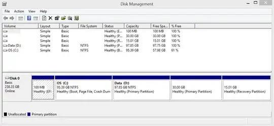Here is a picture of the view in my Disk Management before I deleted the 30.00 GB Healthy (Primary Partition) which I know was definitely Ubuntu.