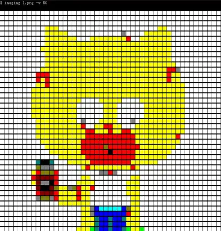 My intent was to ssh into my house, and quickly view images without launching a display over X. Script scales to appropriate width/height for the terminal you are in. I used UTF8 characters to effectively double the vertical resolution of your terminal, which really helps clarity. YMMV.